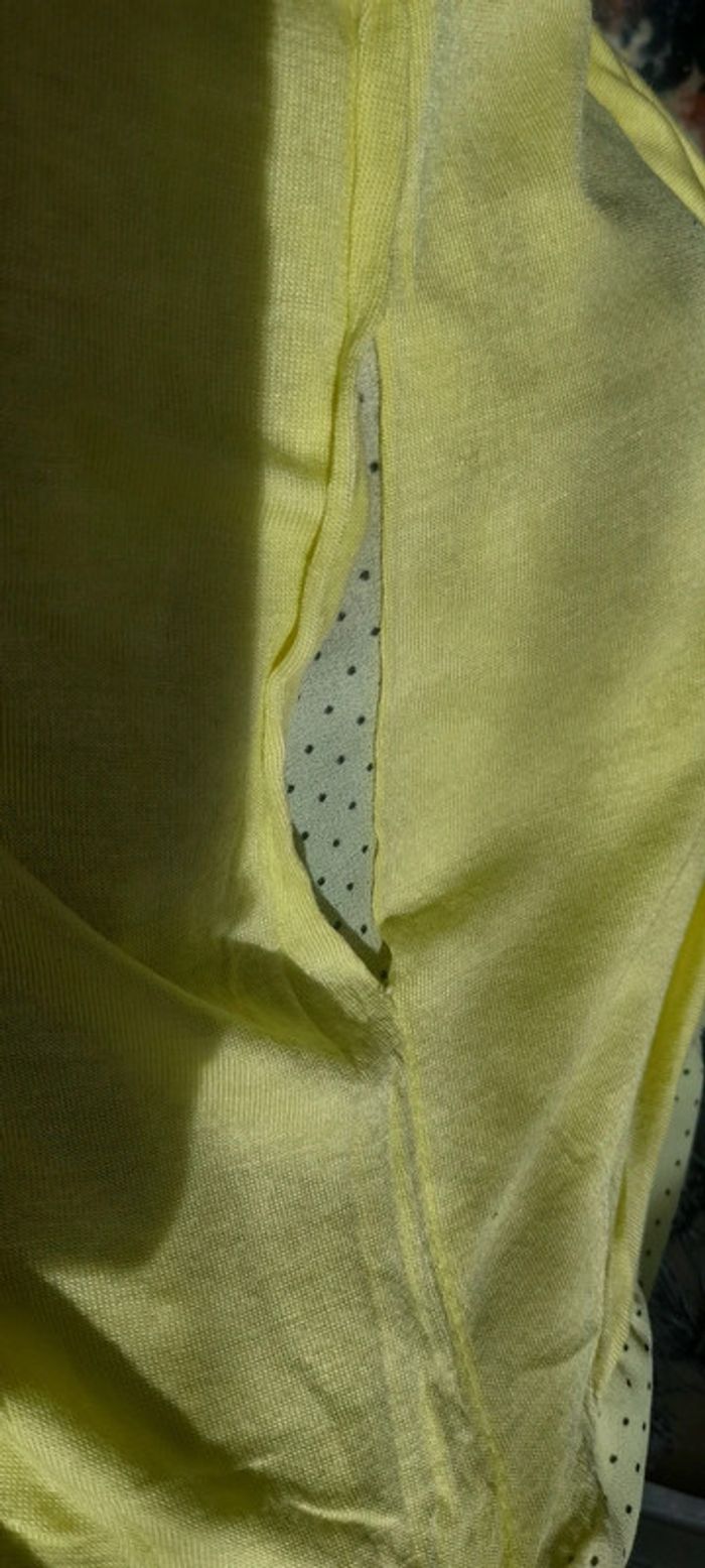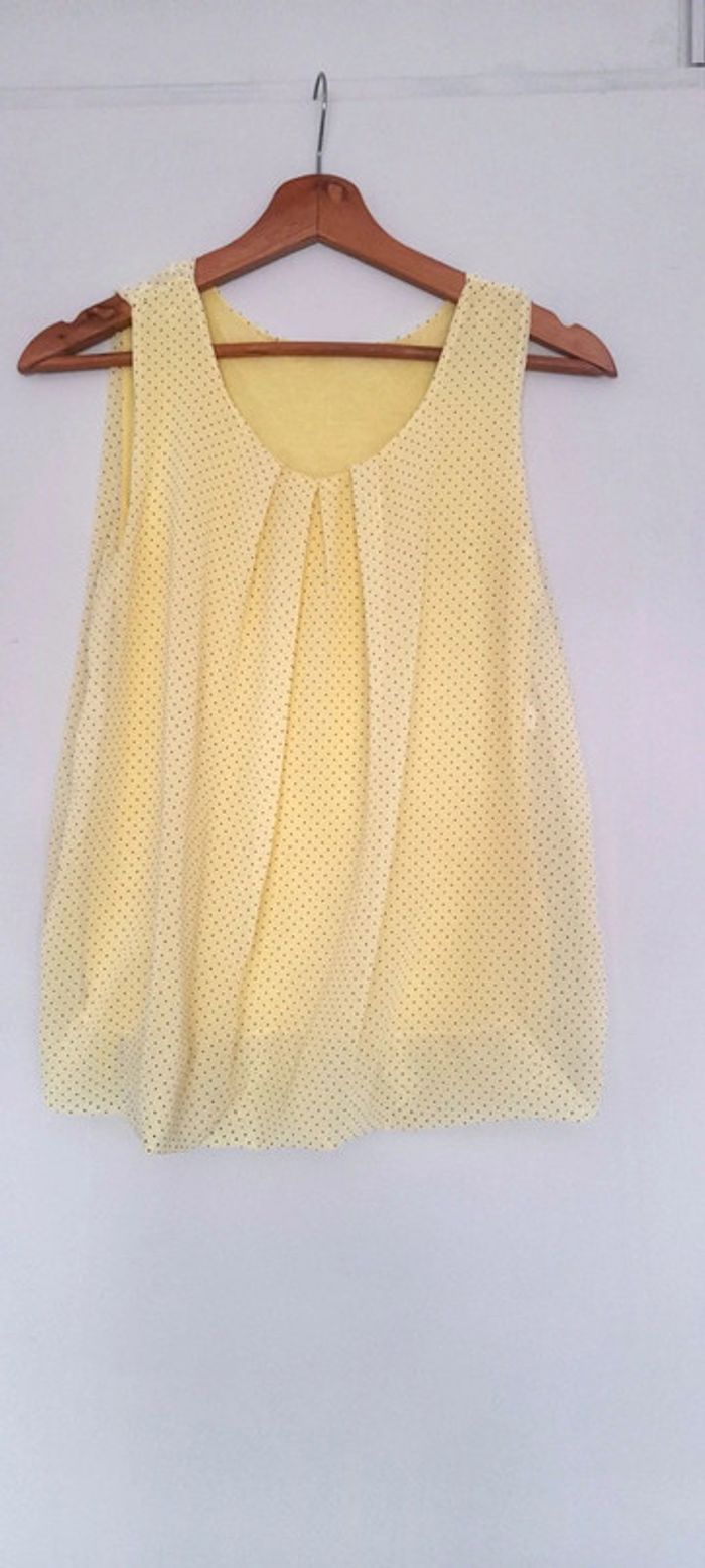Petit haut pour femme la couleur est beaucoup plus belle que sur les photos un peu été porté mais comporte un défaut au niveau de la doublure intérieure qui n'a pas été cousu sur un côté ceci ne gêne pas étant donné que je ne m'en suis même pas rendu compte lorsque je l'ai acheté Taille 36/38