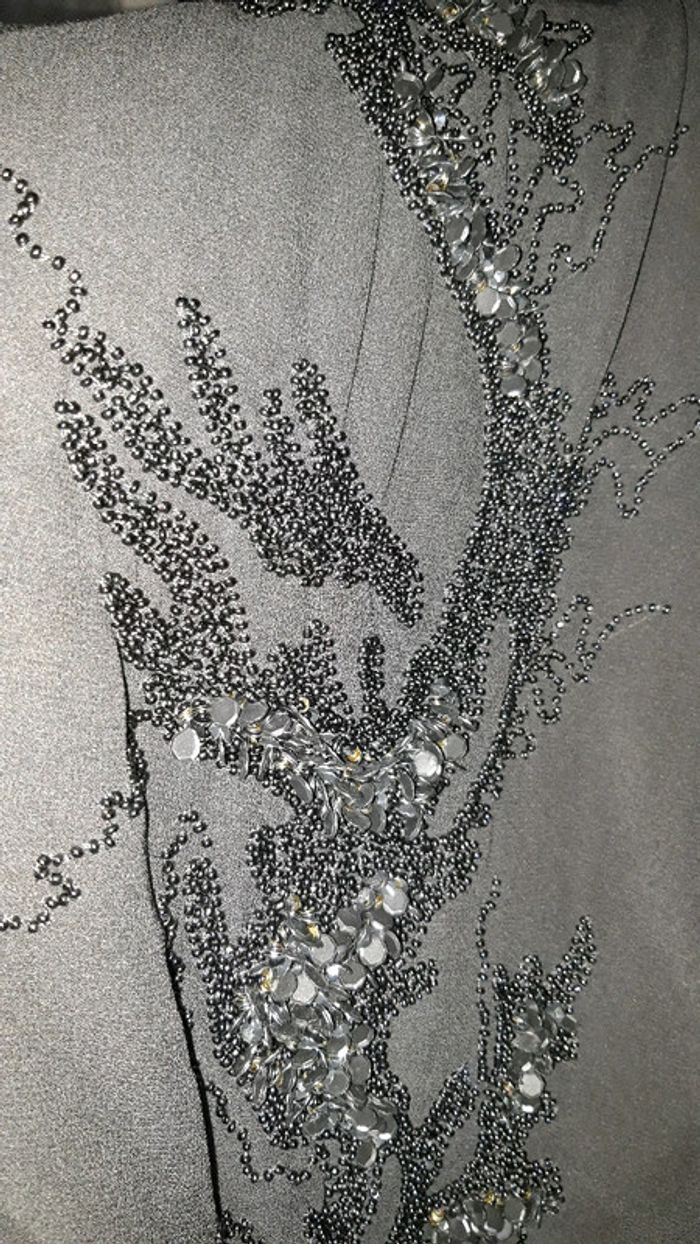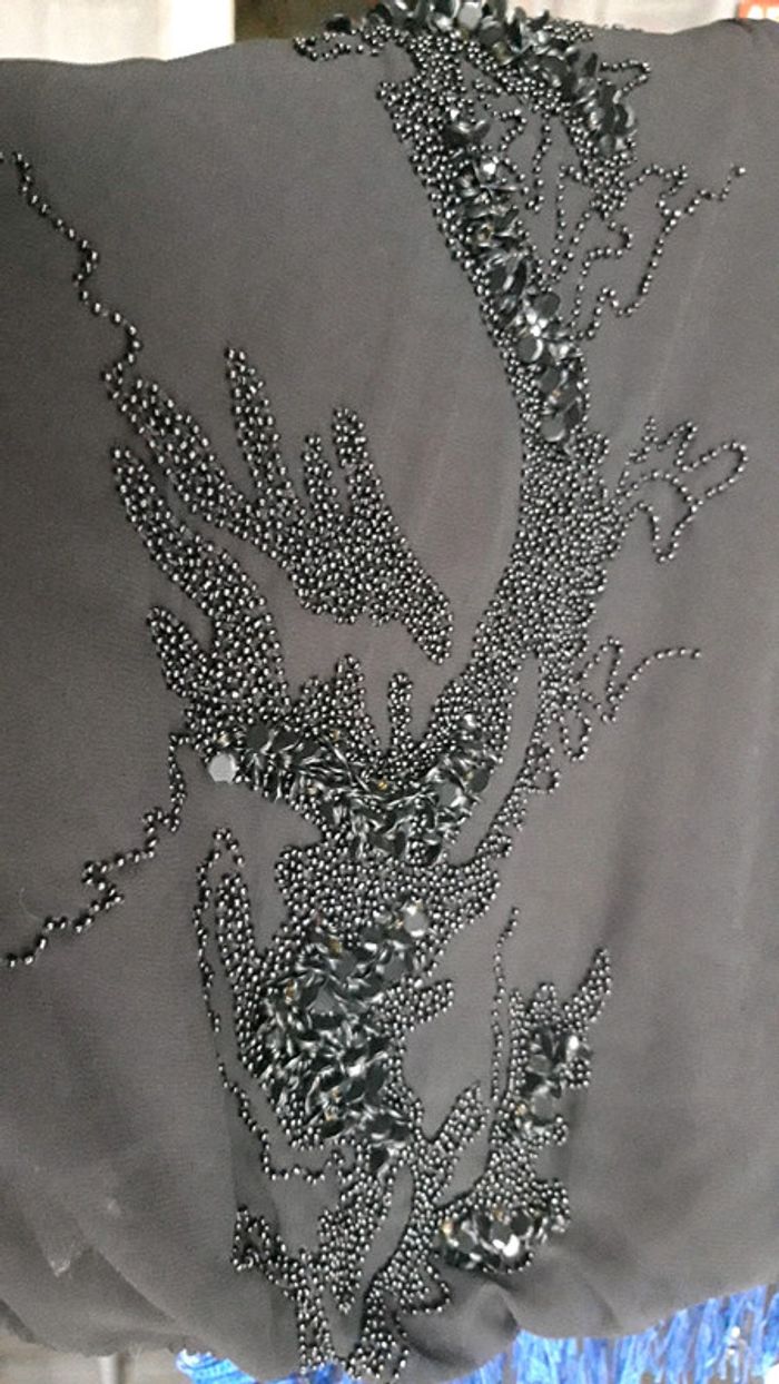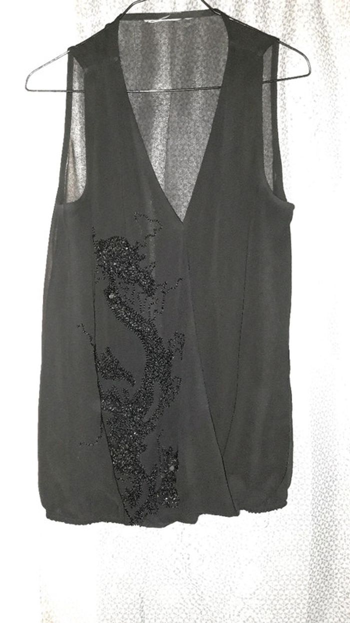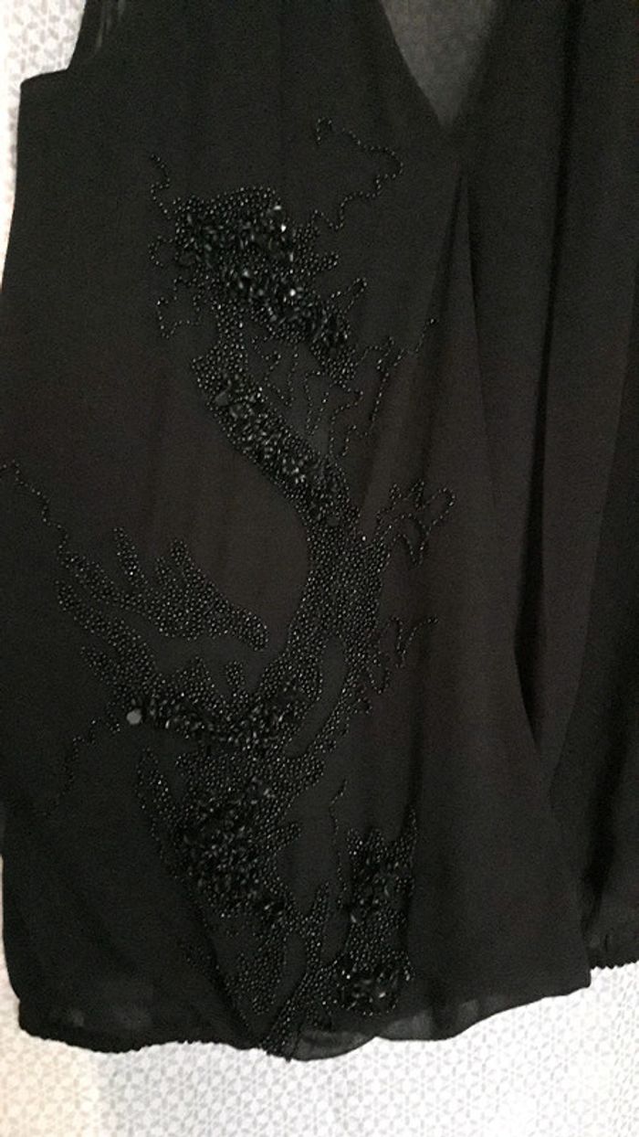 Haut façon cache-cœur ceinture élastique à la taille magnifique broderie en perle bien noir j'ai dû mettre le flash pour faire ressortir la broderie sur la photo porter une seule fois