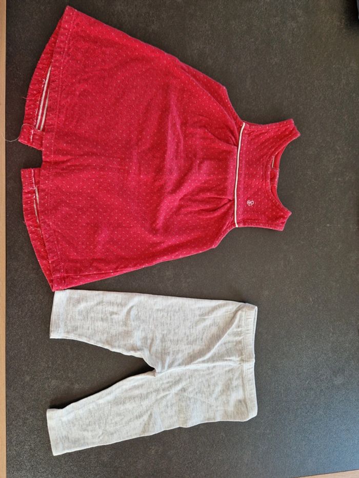 Robe sans manche . Se ferme par pression à l'arrière. Leggings gris chiné Obaïbi 6 mois