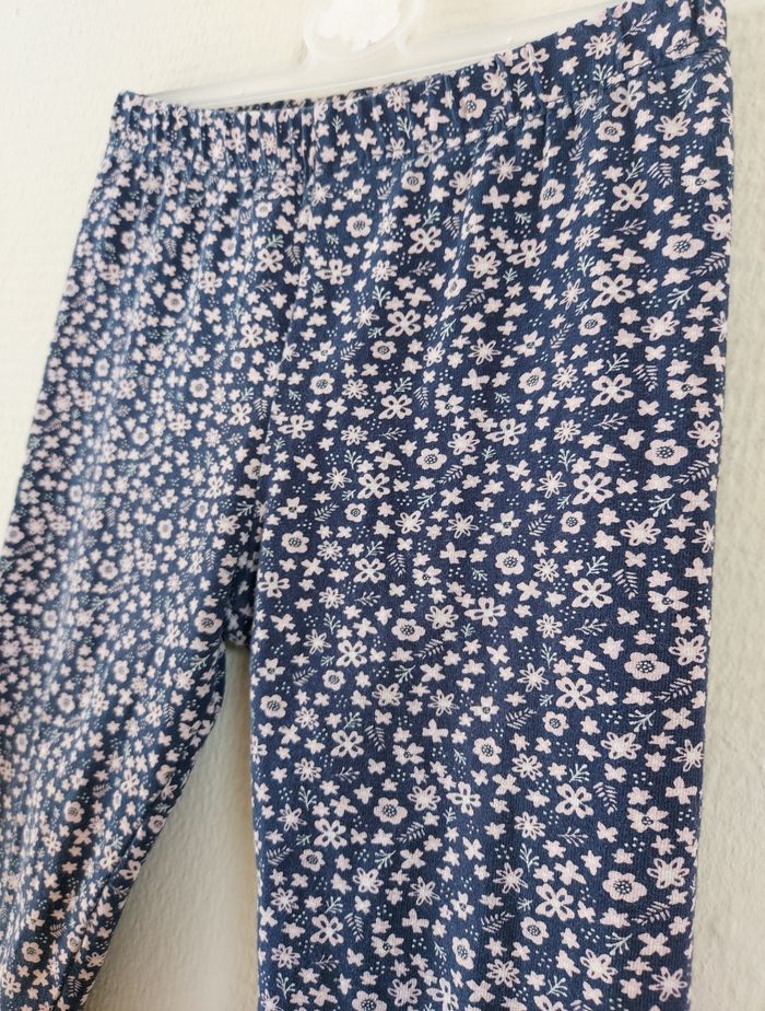 Je vends un legging de couleur bleu marine à motifs (des fleurs roses) de la marque Topolino. Taille : 98 (3 ans). Neuf, jamais mis.