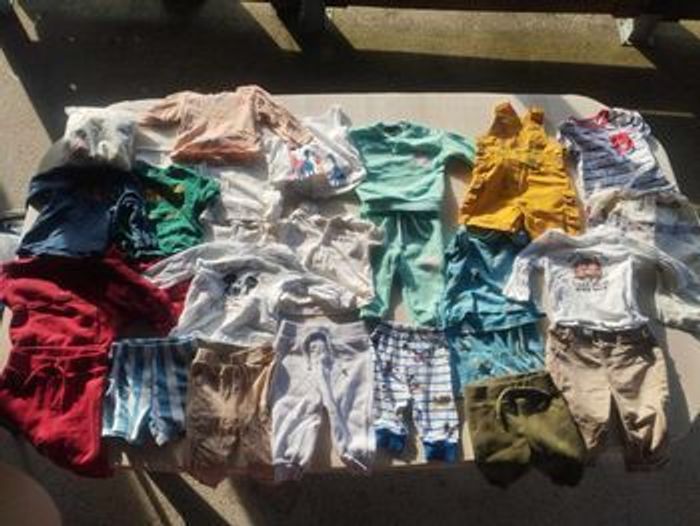 Urgent car déménagement ! Tout doit partir Bonjour, Vend lots de vêtements 3/6 mois il y a 10 pantalons dont quelques shorts,12 t shirts à longue et courte manche + 1 salopette 6 mois + chaussettes Vêtement en bonne état maison non fumeur et triés sur le volets ni tacher ni trouer Je ne fait pas de tris le lot complet uniquement /!\ vêtement d’occasion À envoyer ou à récupéré à grenay près de Lens ,je précise que sa reste de l’occasion