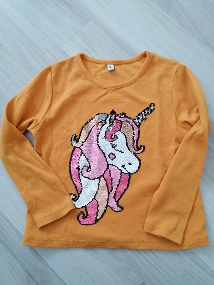 T-shirt manches longues de la marque plus collection. Motif licorne à sequin. Très bons états très peu porté quasi neuf #ninaruby_fille_3ans
