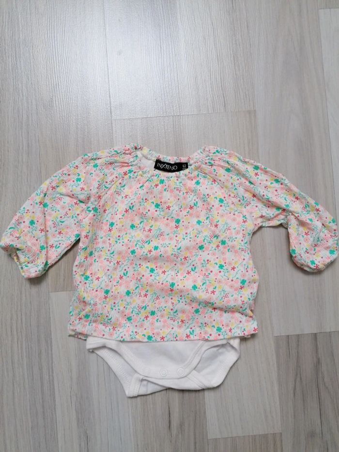 Jolie blouse fleuries avec body inclus. Inextenso 62 cm 3 mois Lavé mais jamais porté