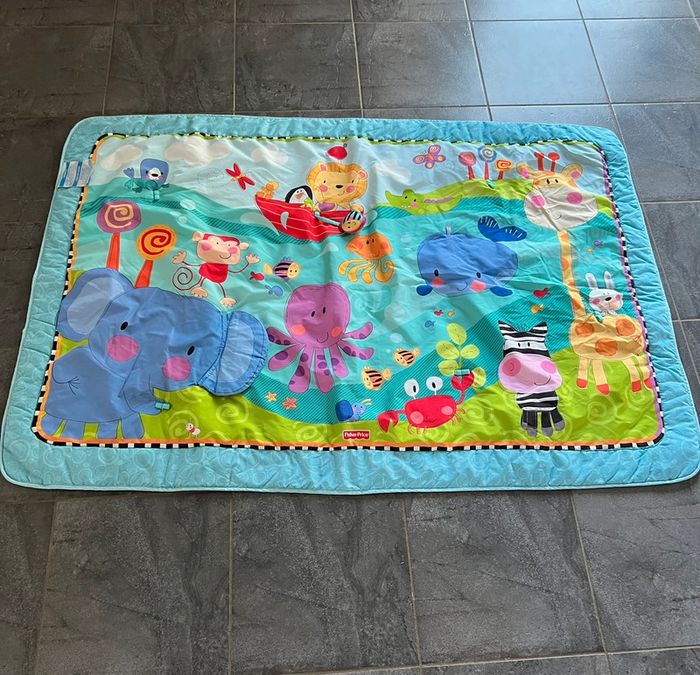 Joli tapis d’éveil avec hochet et oreille de l’éléphant en papier pour stimuler l’éveil de bébé - en très bon état