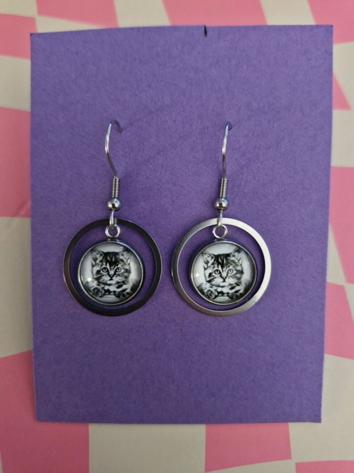 Bonjour à vendre paire de boucles d’oreille chat neuf Fabrication maison 3 euro la paire