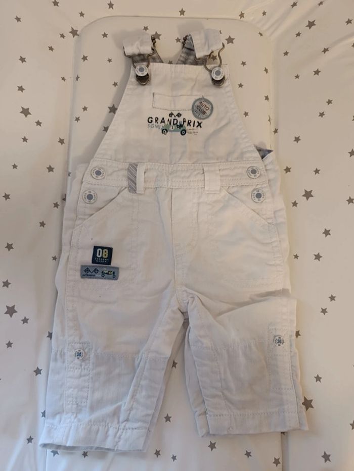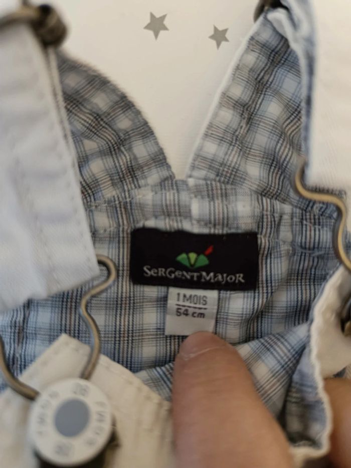 Bonjour a vendre salopette bébé 1 mois sergent major micro tâche juste sous la poche côté gauche sinon Bon état