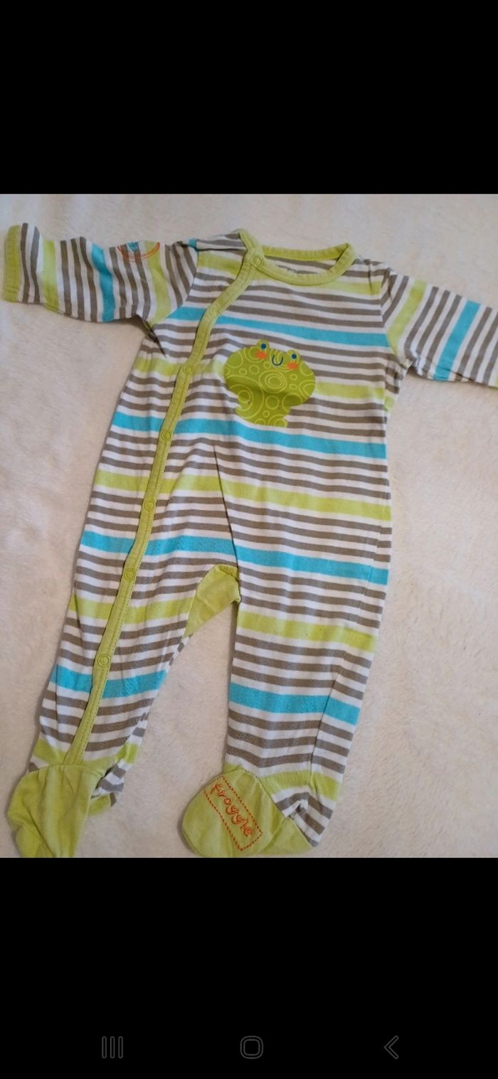 Pyjama fin avec pieds. Ouverture par devant. Tissu légèrement usé par les lavages