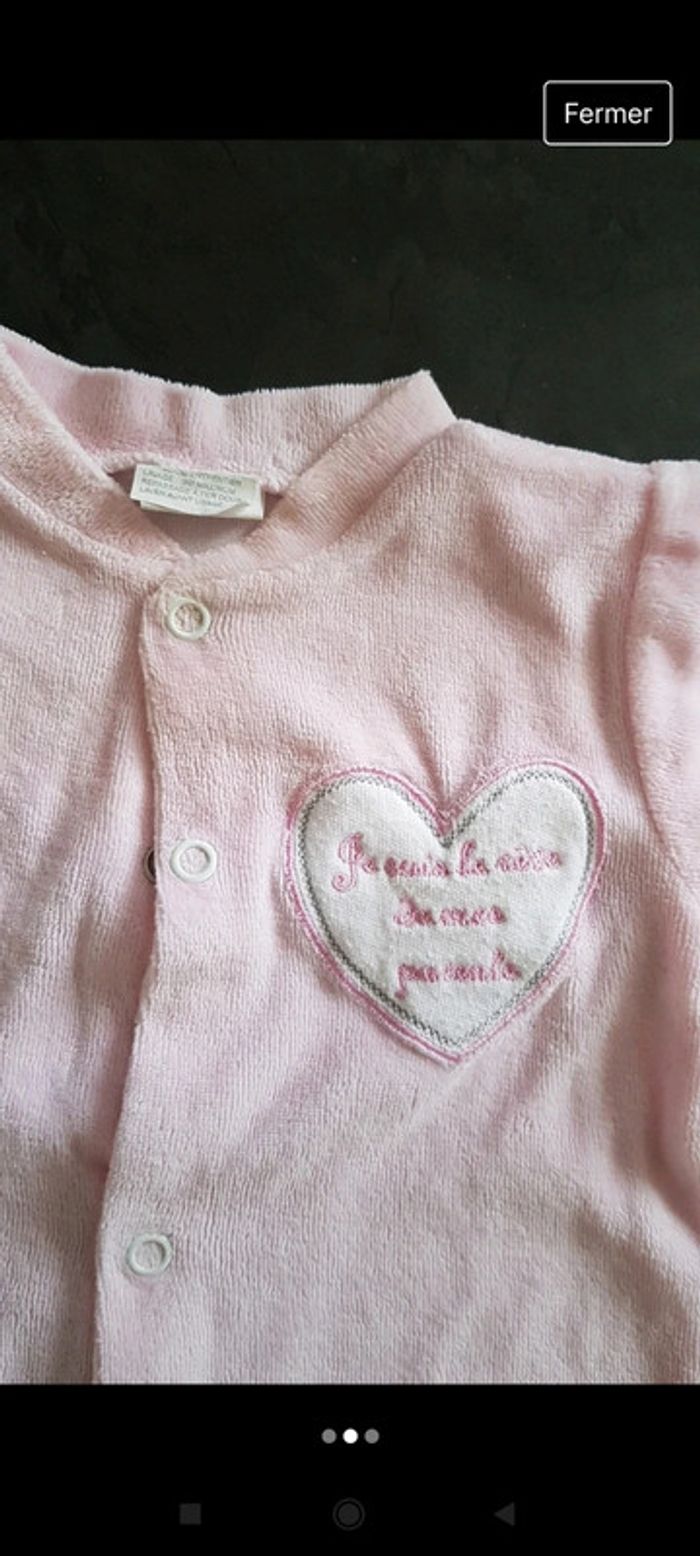 Pyjama rose avec petit coeur blanc. Porté 1 ou 2 fois. Pleins d autres vêtements bb dans mon dressing , n hésité pas à regrouper les frais de port.😉 #pepettechoupettefille_3mois #pyjamafille3mois.