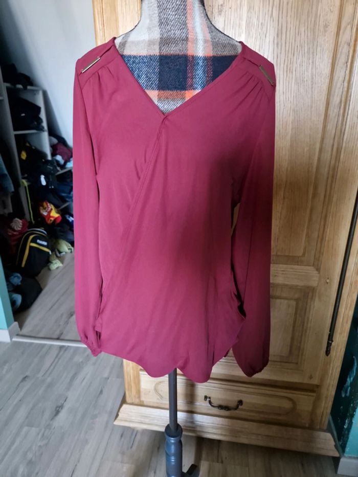 Jolie blouse manches longues bordeaux yessica taille m - photo numéro 1