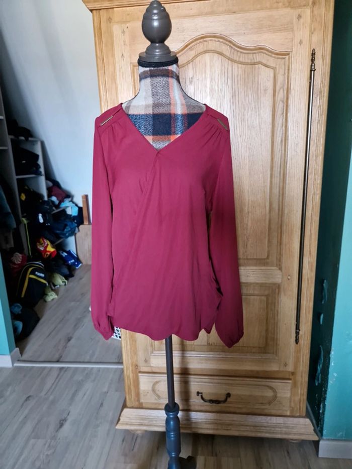 Jolie blouse manches longues bordeaux yessica taille m - photo numéro 2