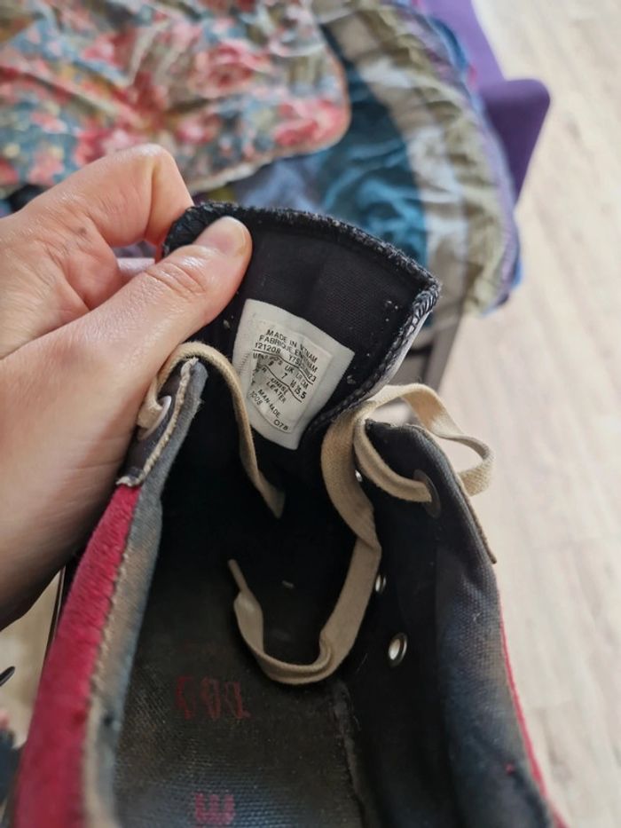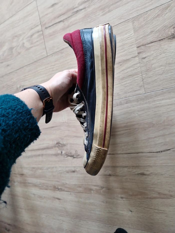 Paire de converse cuir noires et rouges pointure 7 - photo numéro 8