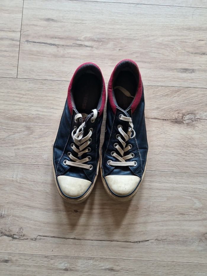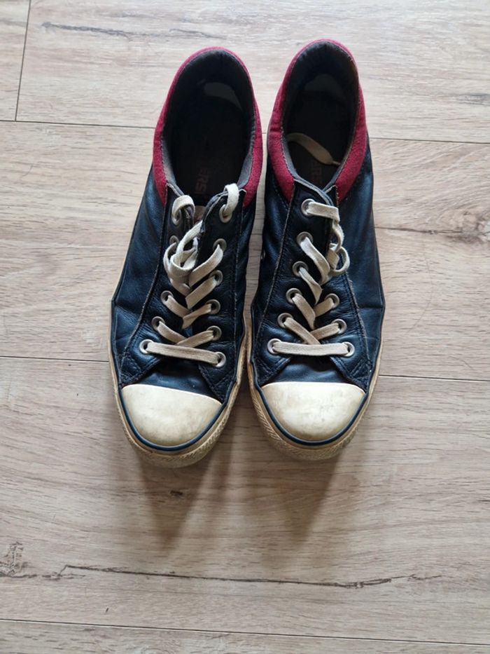 Paire de converse cuir noires et rouges pointure 7 - photo numéro 1