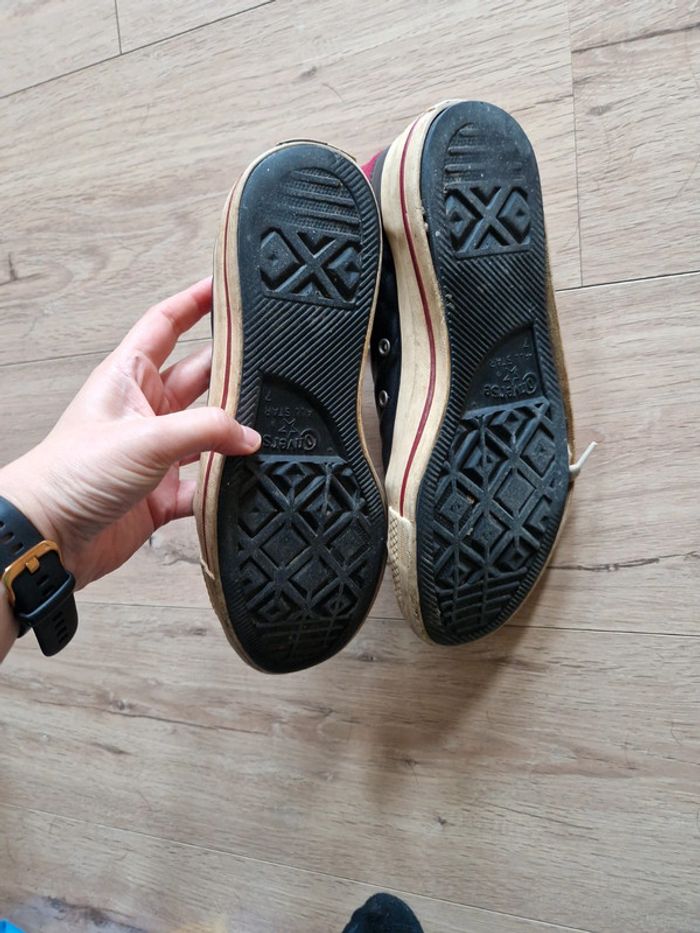 Paire de converse cuir noires et rouges pointure 7 - photo numéro 6