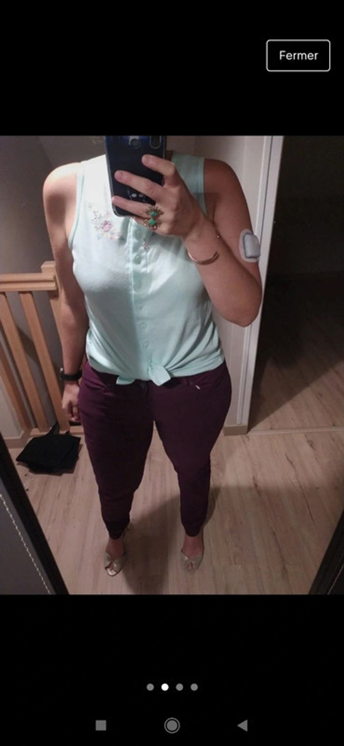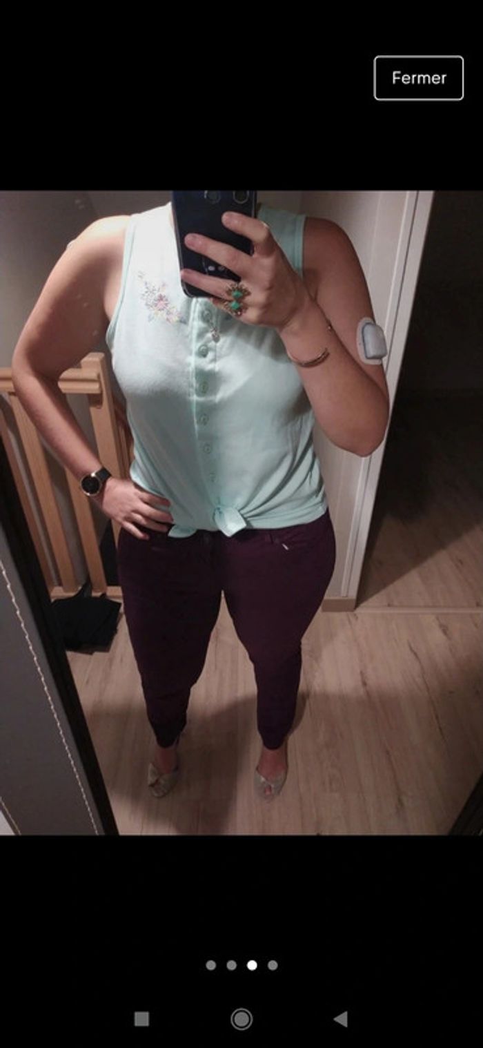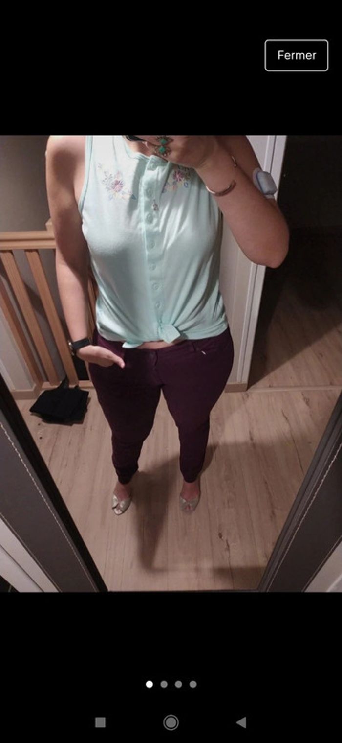 Superbe petit débardeur vintage brodé taille m menthe - photo numéro 4
