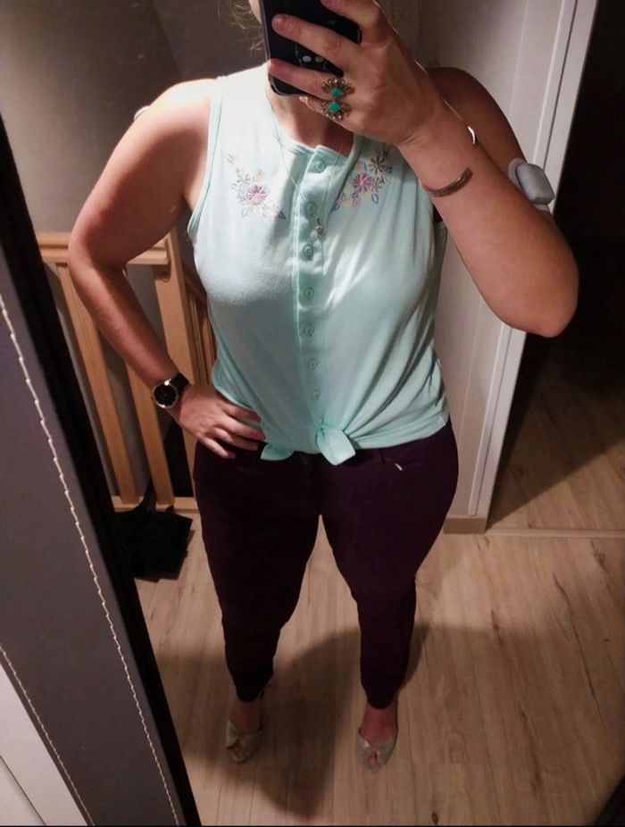 Superbe petit débardeur vintage brodé taille m menthe - photo numéro 3