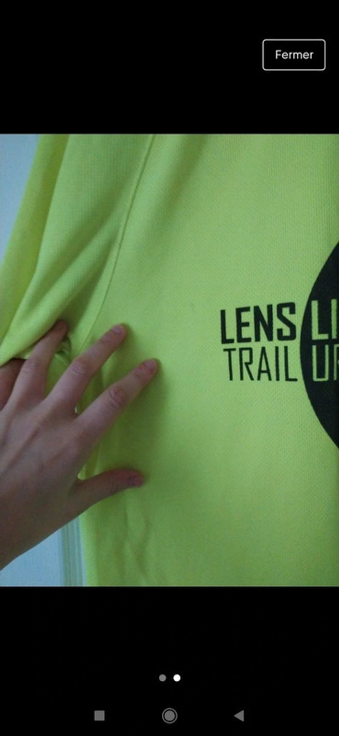 T-shirt jogging running course trail Taille s Jaune vert fluo Matière agréable qui laisse respirer la peau Trail urbain Lens Liévin Légère tâche (voir photo) Ne se voit pas #tshirt #running #trail #trailurbain #lens #course #running