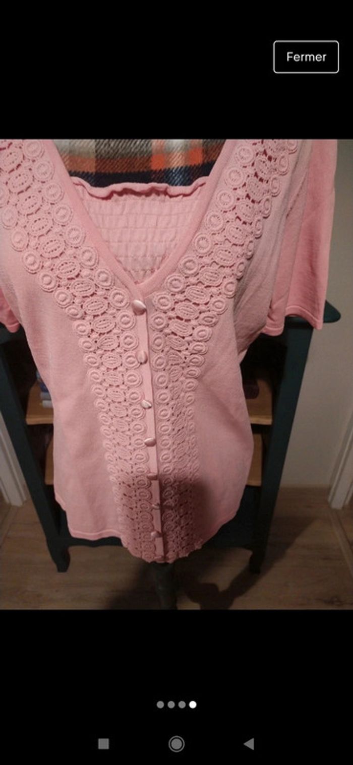 Pull manches courtes rose Damart taille 42 44 vintage - photo numéro 4