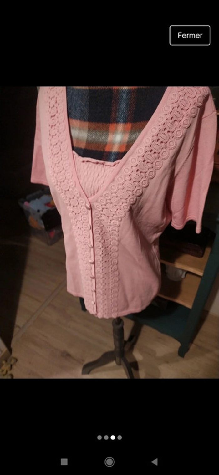 Pull manches courtes rose Damart taille 42 44 vintage - photo numéro 3