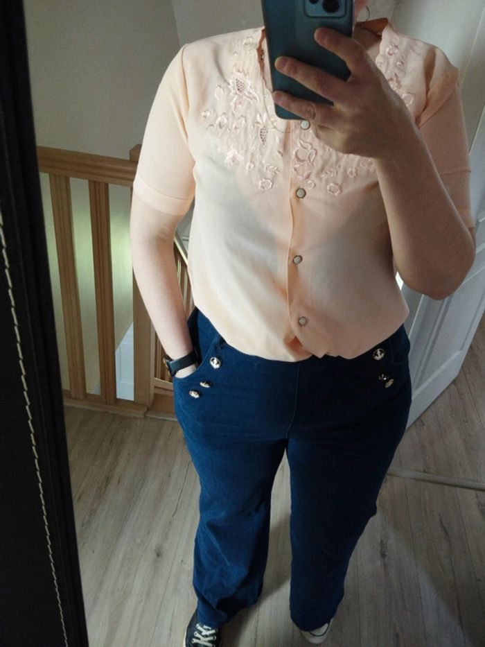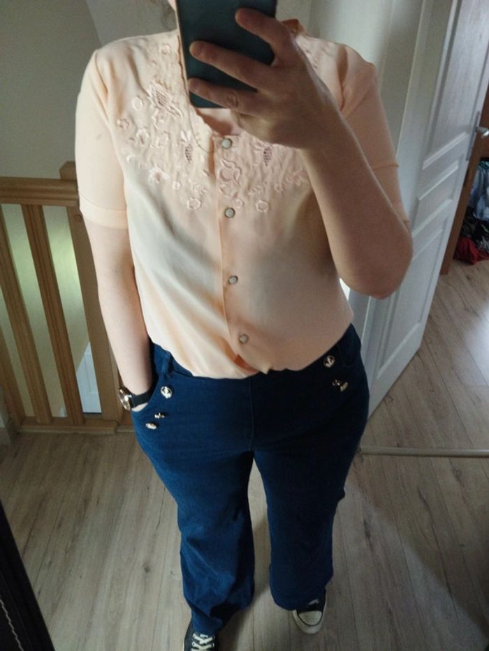 Blouse manches courtes broderies vintage saumon taille m - photo numéro 2