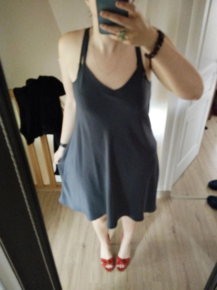 Superbe robe à bretelles Sexy avec son decolleté et son dos travaillé Originale Gris anthracite Marque Promod Parfaite pour une fête ou l'été Elle est très légère Il n'y a plus d'étiquette mais il s'agit d'un 42 N'hésitez pas si vous voulez les mesures Petite couture moins jolie à l'arrière mais elle est très sympa #robe #robebretelles #bretelles #robeoriginale #original #sexy #promod #taille42