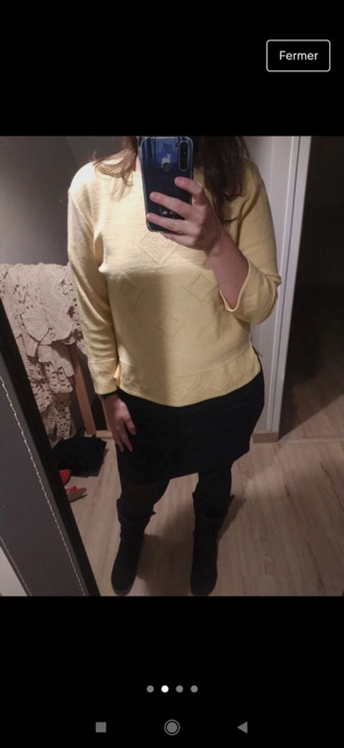 Joli pull jaune vintage manches 3/4 taille L xl - photo numéro 1