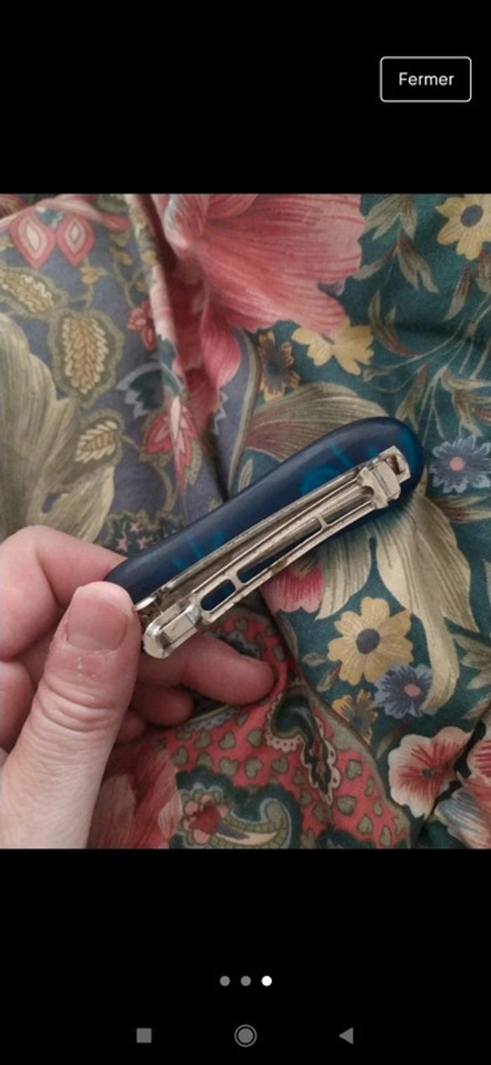 Pince clip vintage bleu et doré - photo numéro 3