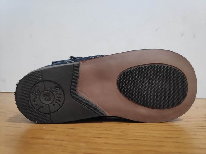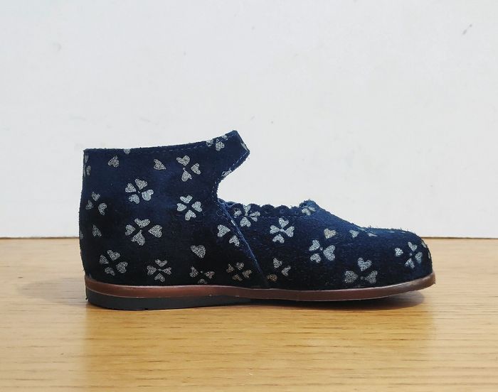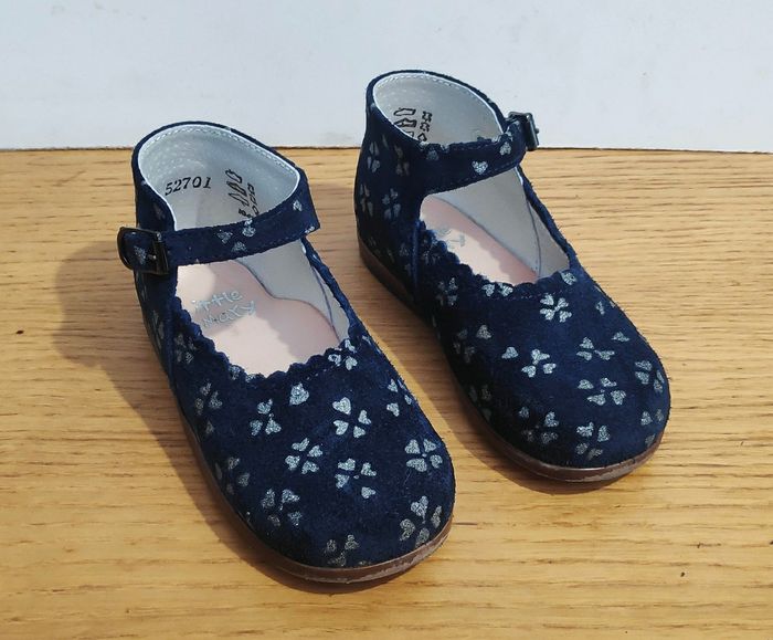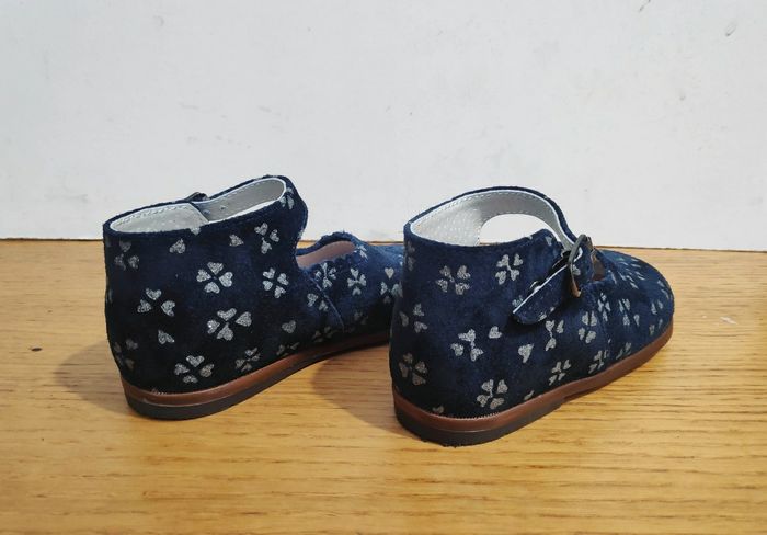 Chaussures de la très belle marque Little Mary en taille 23. Elles sont comme neuves, ma fille les a porté une seule matinée, c'était un achat trop anticipé et nous nous sommes aperçu qu'elle a pris une pointure au moment de les porter. Matières : Cuir suède bleu marine, semelle intérieure cuir, semelle extérieure caoutchouc Détails : Bride, Boucle métallique, Découpes fantaisies, motif argenté sur le cuir. Prix neuf : 72 € Made in : France