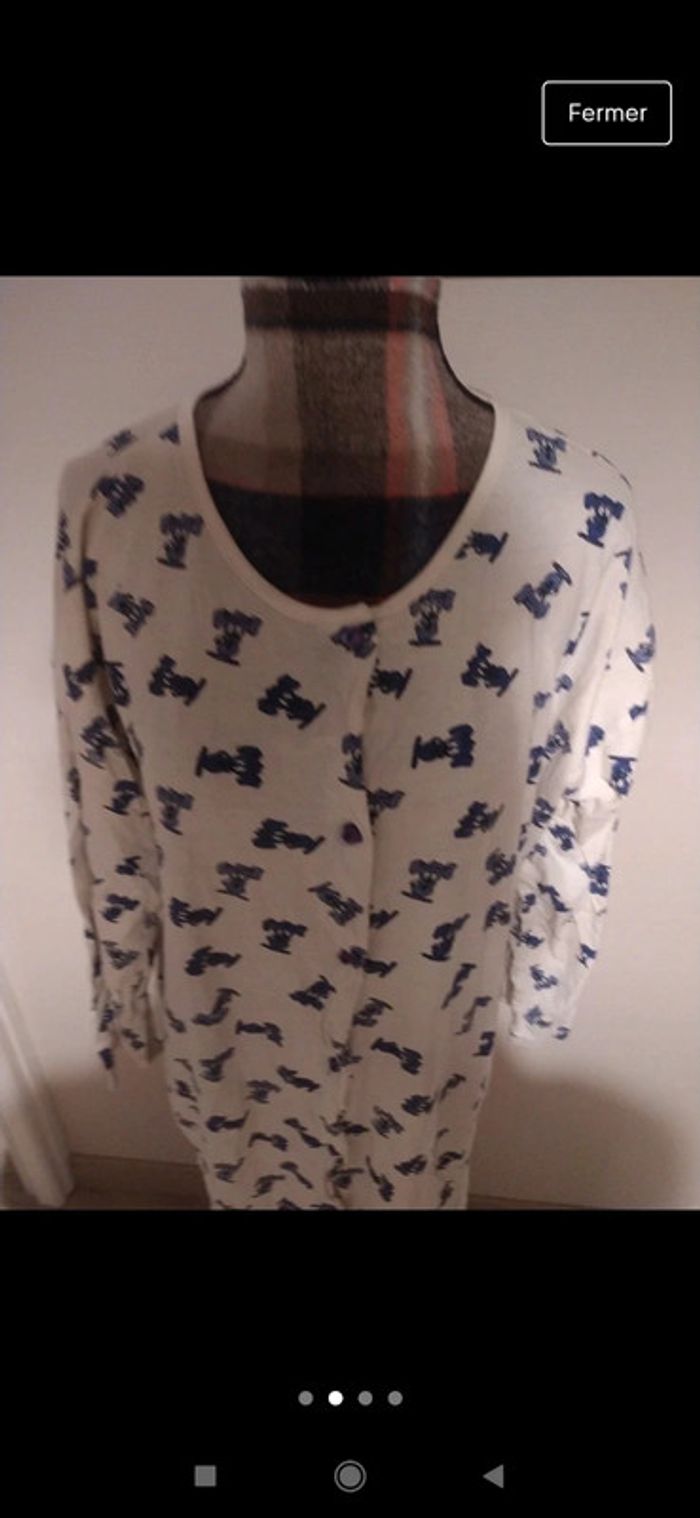 Chemise de nuit liquette manches longues blanc bleu chien taille m - photo numéro 4
