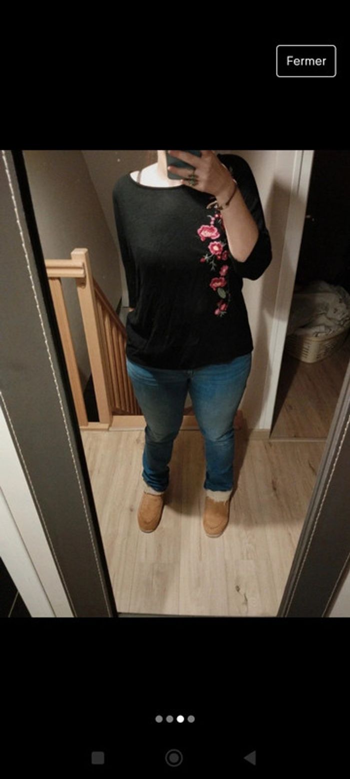 Superbe pull oversize noir avec broderies fleurs sur la poitrine look vintage Taille xl Pimkie Manches 3/4 Fleurs brodées Pimkie #pimkie #fleursbrodées #brodé #pullbrodé #broderie #folk #boho #boheme