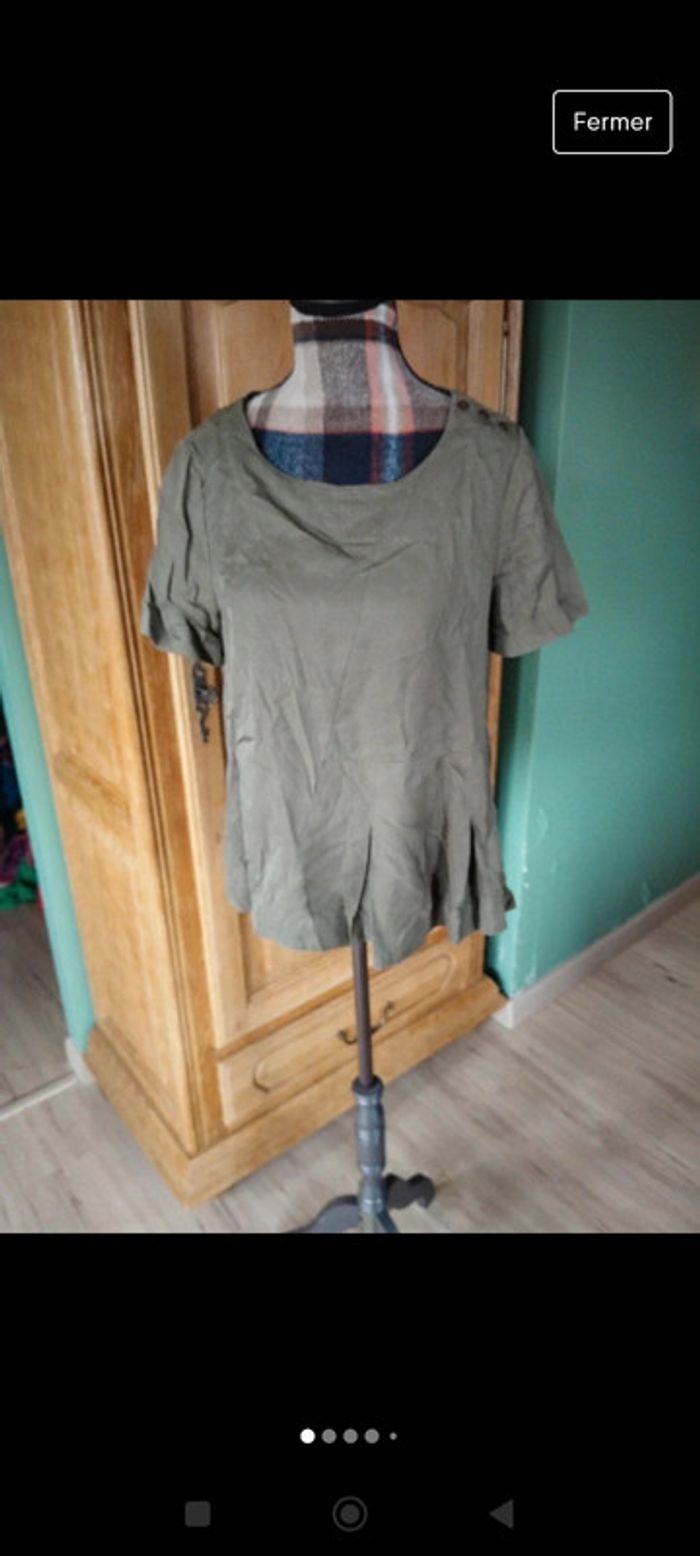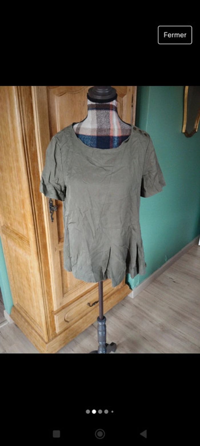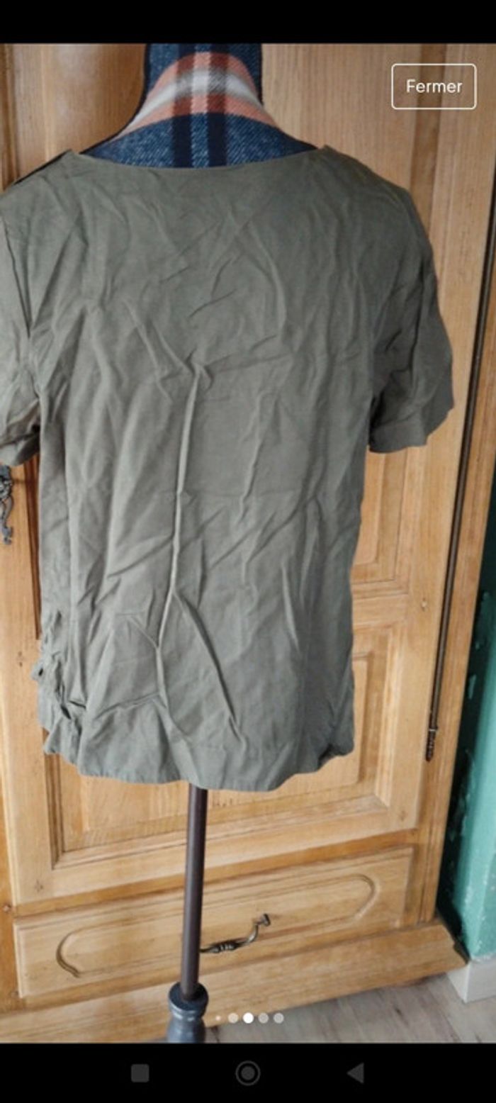 Top asymétrique kaki blouse manches courtes taille s Karl mark John - photo numéro 7