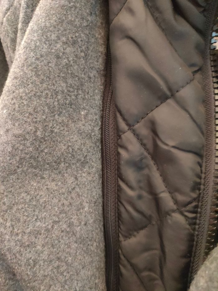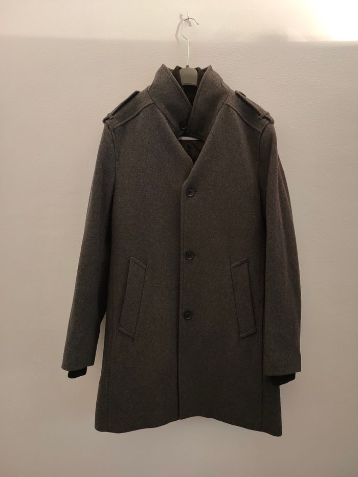 Manteau idéale pour Automne Hiver. Style aujourd'hui. Col Mao . Manteau rembourrée par un blouson bombardier non amovible. Poches italiennes Taille 50.