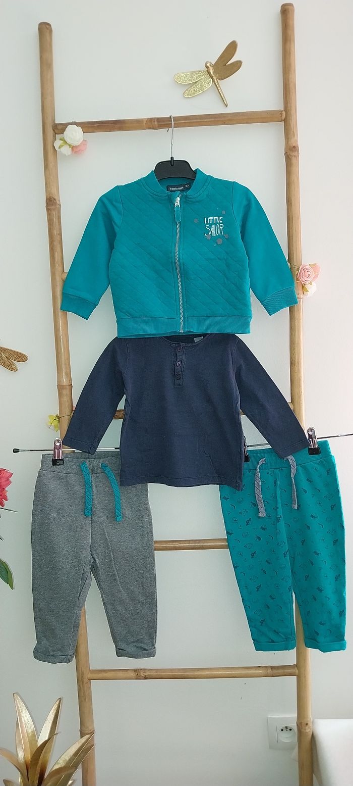Tenue complète pour baby boy... 4 pièces 1 veste zippée 2 pantalons sarouels Taille ajustable 1 t-shirt manches longues bleu marine Taille 18 mois By In Extenso 100% coton Très bon état Tons vert, bleu marine et gris So cute #ensemble #ensemblebébégarçon #ensemble4piecesgarcon18mois #ensemblebebegarcon18mois #4pieces #vestezippee #sarouel #jogging #tshirtmancheslongues #bleumarine #gris #vert #dressingbebegarcon #dressingbebegarcon18mois #sojubebe #sojubenegarcon #sojubebegarcon18mois #sojubebegarconensemble #sojubebegarconensemble18mois Envoi rapide suivi et soigné assuré