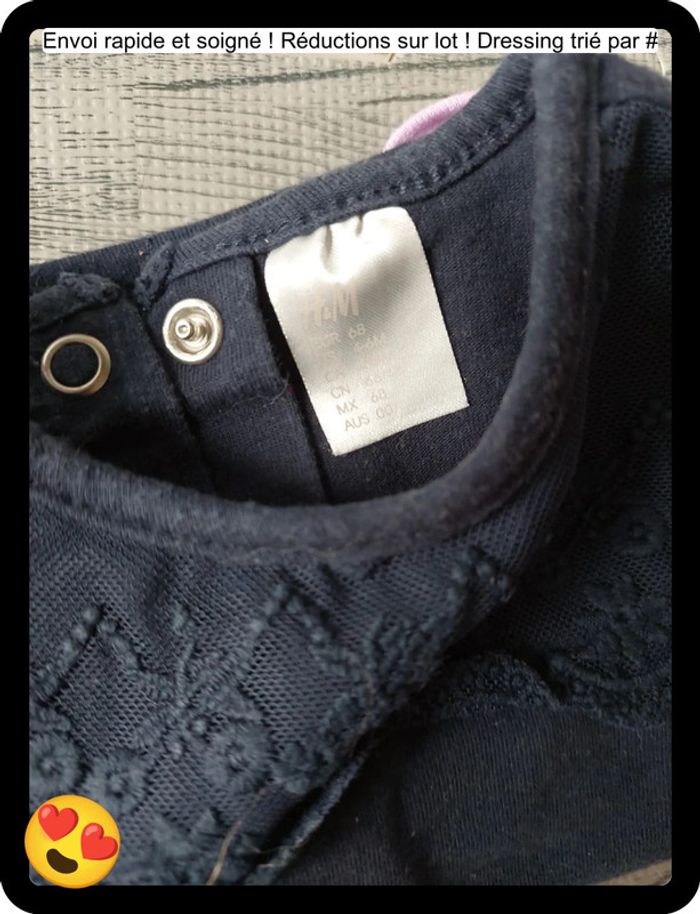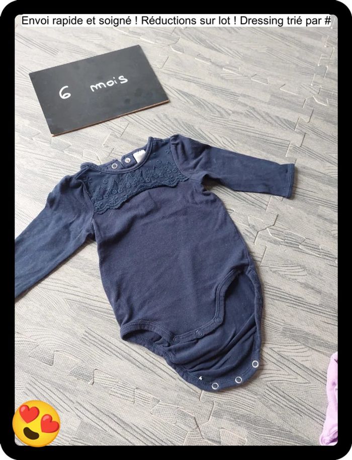 Lot de 2 bodys Un body style habillé et un body violet avec inscription Très bon état Taille 6 mois #aposocco_bebe_6mois