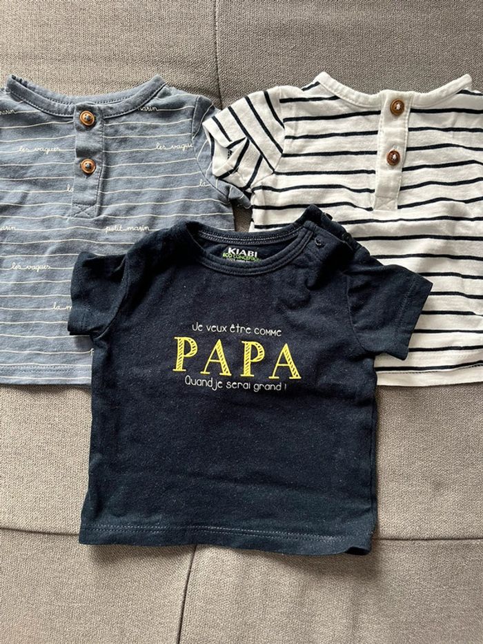 3 t-shirt manches courtes Marque kiabi Très bon état Lot pouvant être modifié avec d’autre vêtements du dressing ou vendu à l’unitaire N’hésitez pas à demander #1moisbebegarconmaeva45140