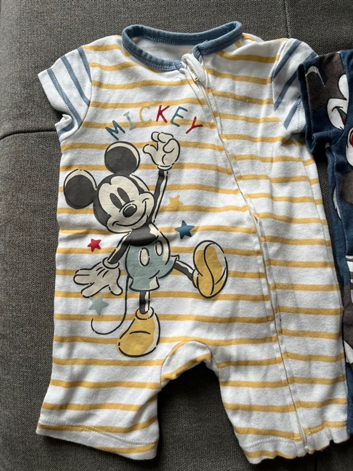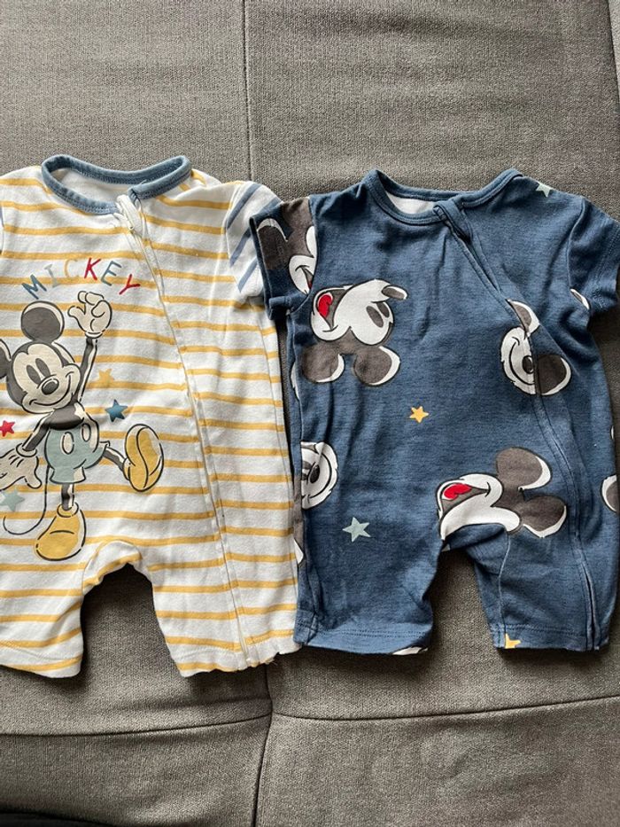 2 barboteuses Mickey Ouverture sur le devant avec fermeture éclair jusqu’en bas Marque Disney Très bon état, porté seulement 2-3 fois chacune Lot pouvant être modifié avec d’autre vêtements du dressing ou vendu à l’unitaire N’hésitez pas à demander #1moisbebegarconmaeva45140