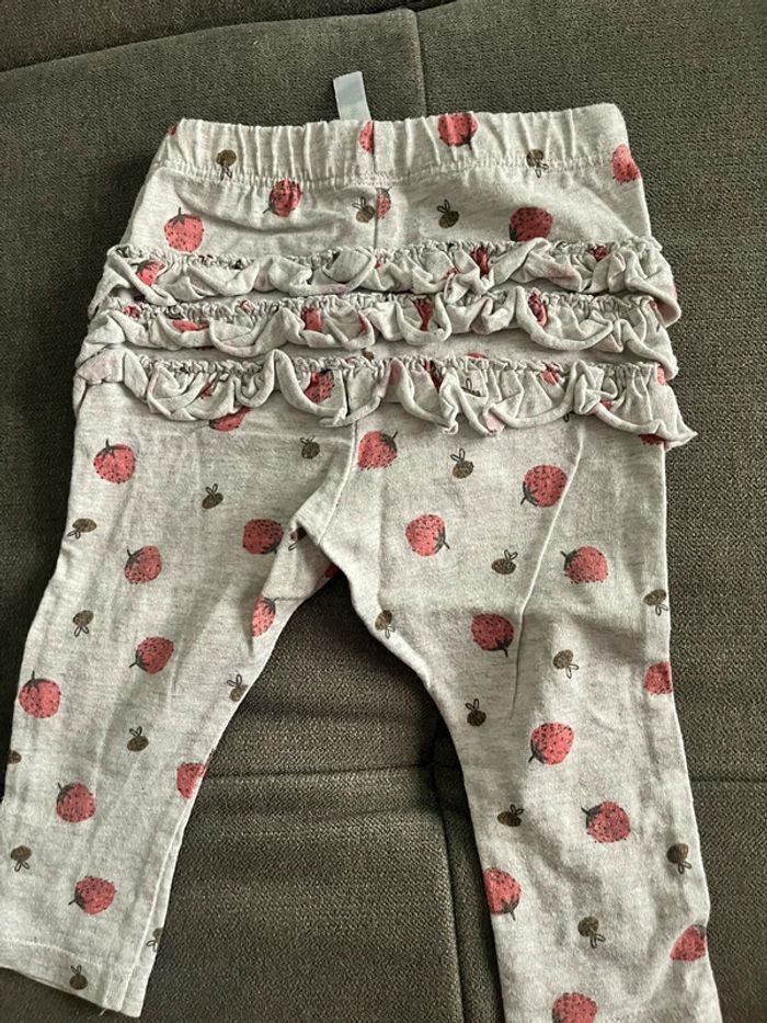 Legging gris, motif fraise avec froufrou Marque Tex Très bon état #6moisbebefillemaeva45140
