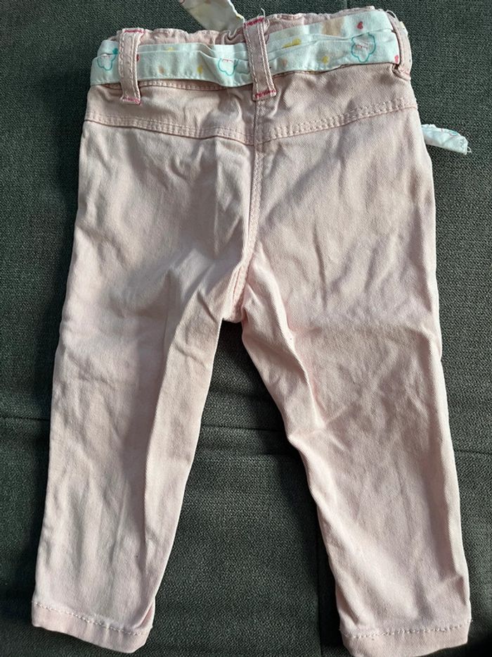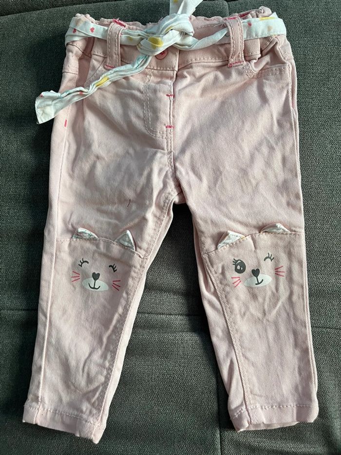 Jean rose pale avec motif chat au genou et oreilles en relief Ceinture avec motif T-shirt dans le dressing qui peux faire l’ensemble car même motif que la ceinture Marque Pat et Ripaton Très bon état #6moisbebefillemaeva45140