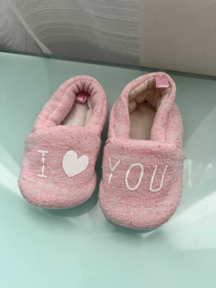 Chaussons bébé rose I love U Très bon état #chaussuresbebefillemaeva45140