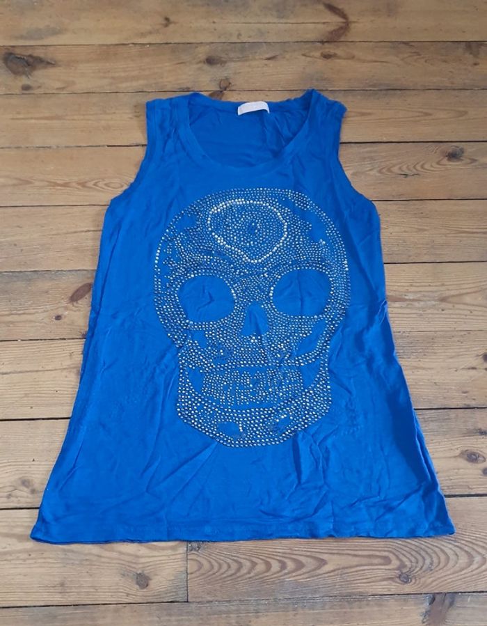 Débardeur Bleu électrique crâne en strass brillants argentés bisou's project