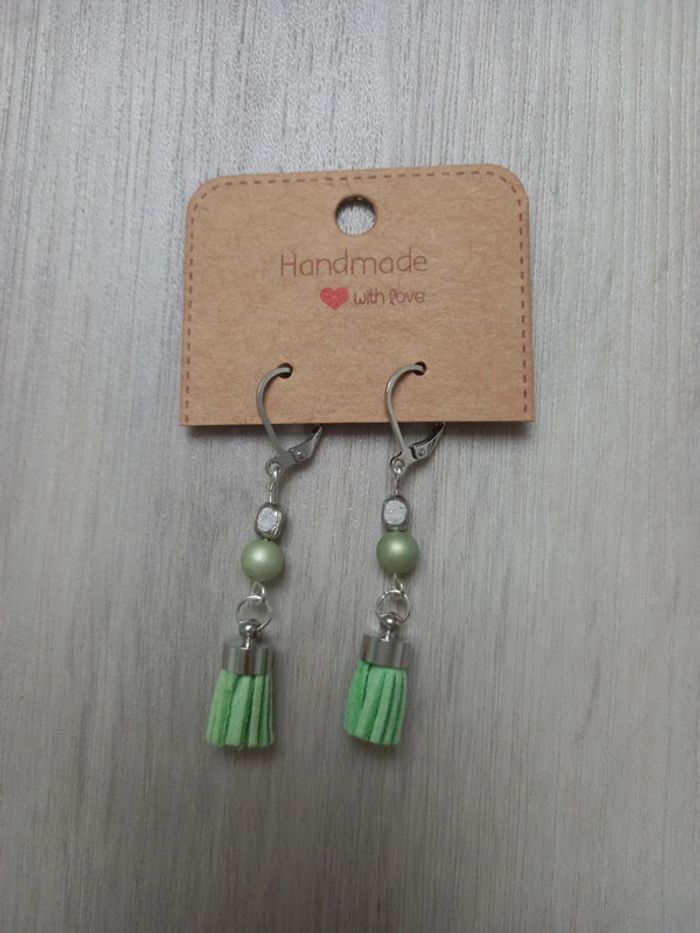 Boucles d'oreilles vertes neuf fait main
