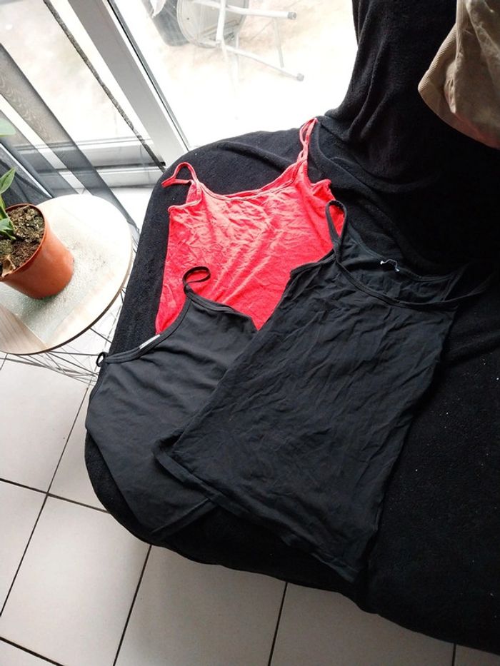 Un rouge coupé large,1 noir court in extenso et 1 noir près du corps + long pimkie