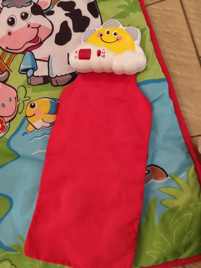 Tapis d'éveil musical En 2 parties pour pouvoir le nettoyer. Acheter en 2016 Quelques marques d'usure sur le nuage (jaunis) la glace et l'anneau de dentition sont rayés.