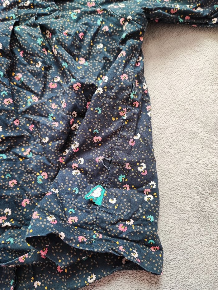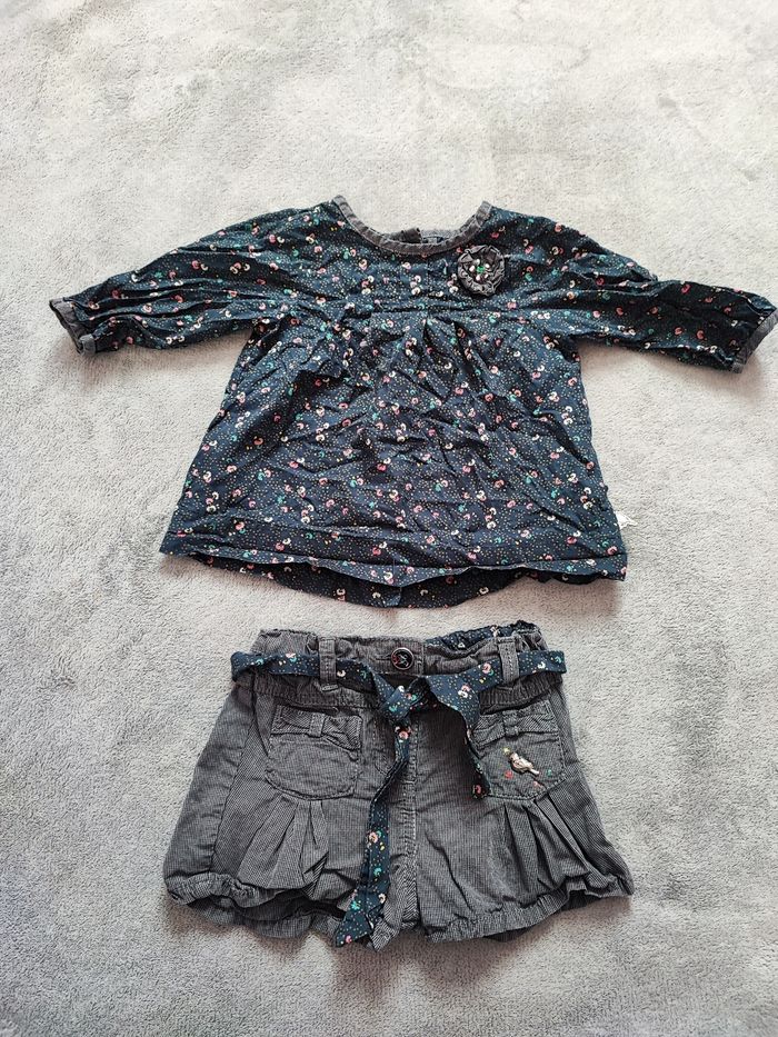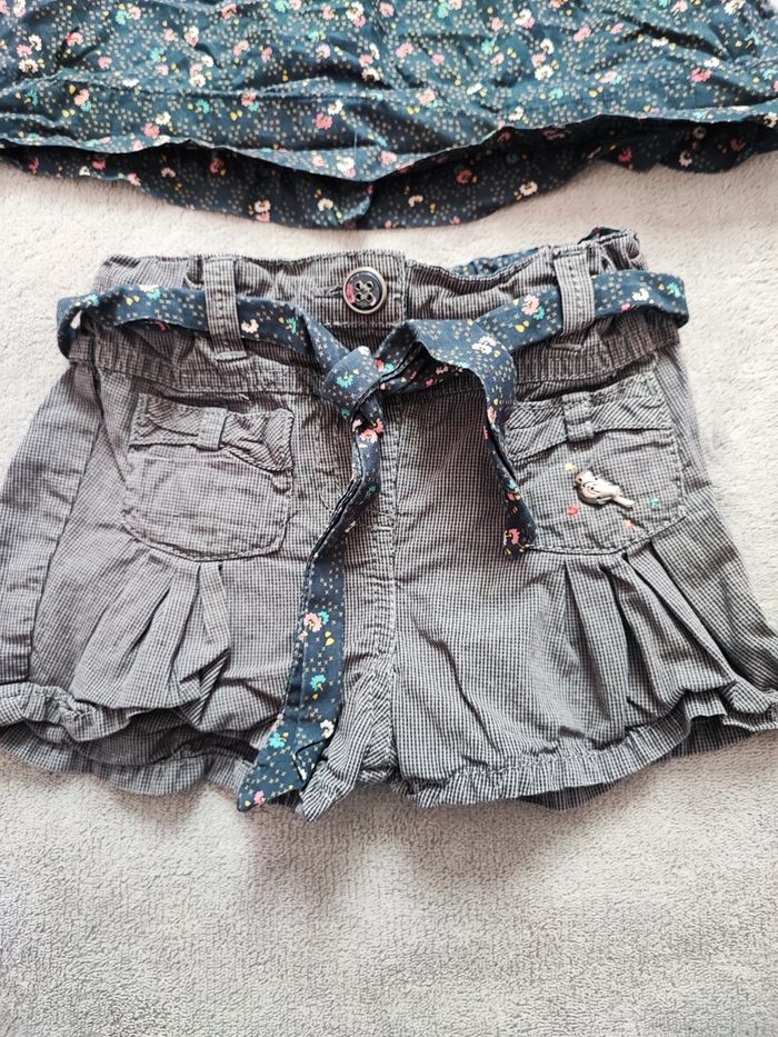 Ensemble fleurie blouse + short 6 mois (67 cm) Trou sur le côté de la blouse , ne se voit pas quand la blouse est rentrée dans le short