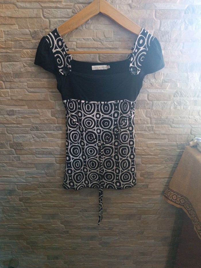 Tunique Cache Cache T2/38, épaules 38 cm, aisselles 42 cm, longueur 68 cm. 96% viscose, 4% élasthanne. TBE