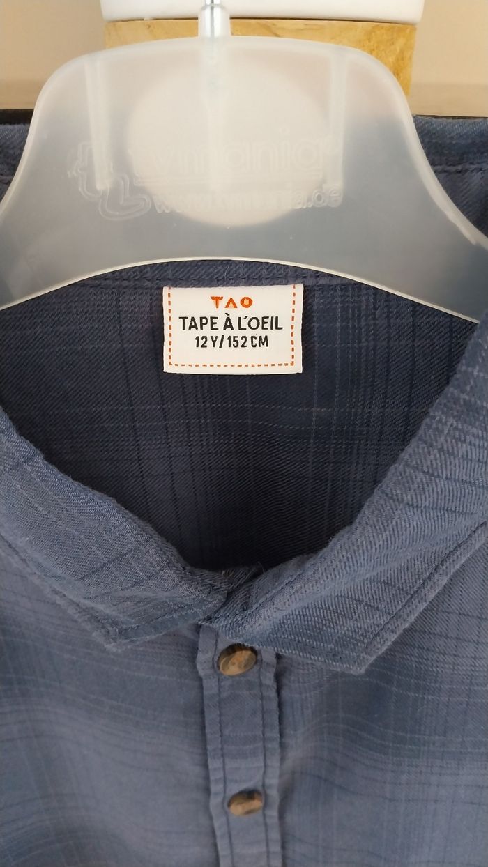 Chemise manches longues. Marque : Tape à l'œil 💐. Neuf 💗 ( mis 1 fois ) Taille : 12 ans/ 152 cm . Coloris : bleu. Rayée, à carreaux. Col. Boutons. Matière : 100% coton. Voir mon dressing. D'autres articles pour enfant . Envoi soigné. De préférence via Shop de Shop colissimo 🌺 🌺 🌺 : envoi plus rapide. ( Sweat, doudoune, pull, baskets, jogging, veste, manteau, t shirt, pyjama, foot, jeans... ).