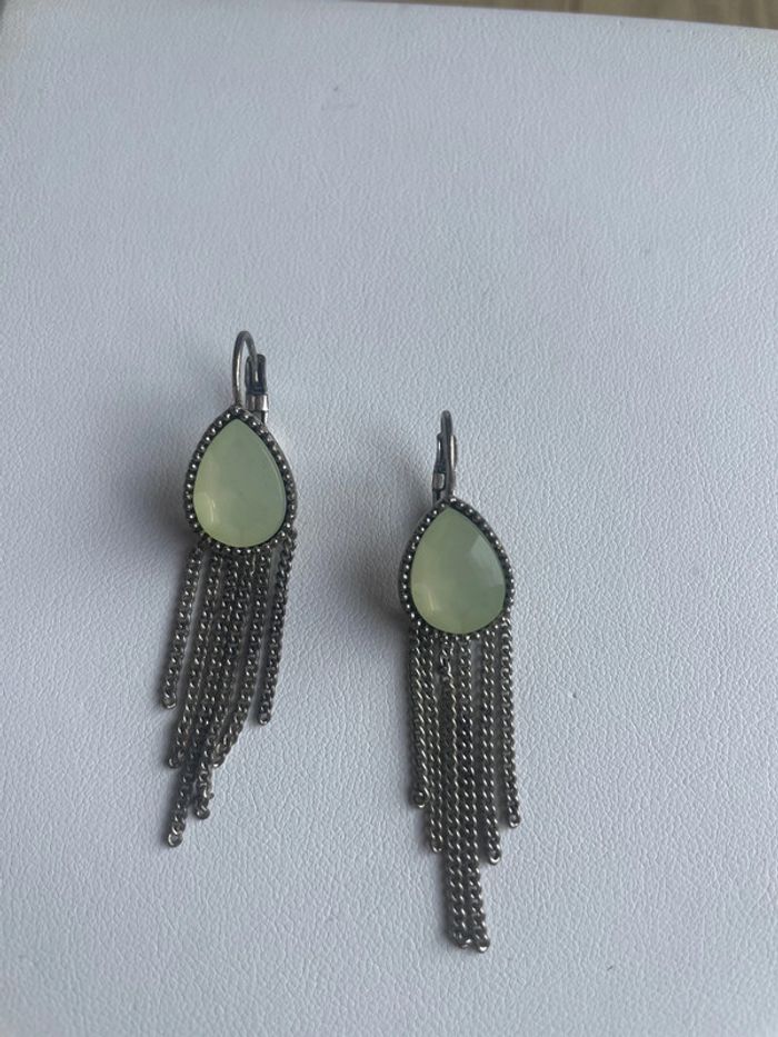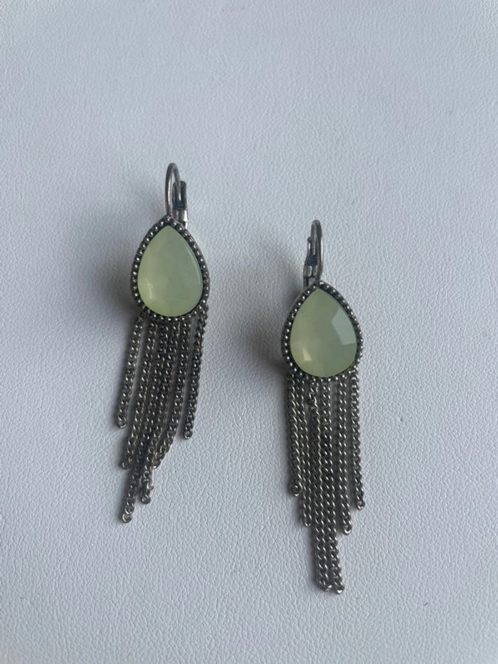 Boucles d’oreilles dormeuses Pierre verte céladon - photo numéro 1