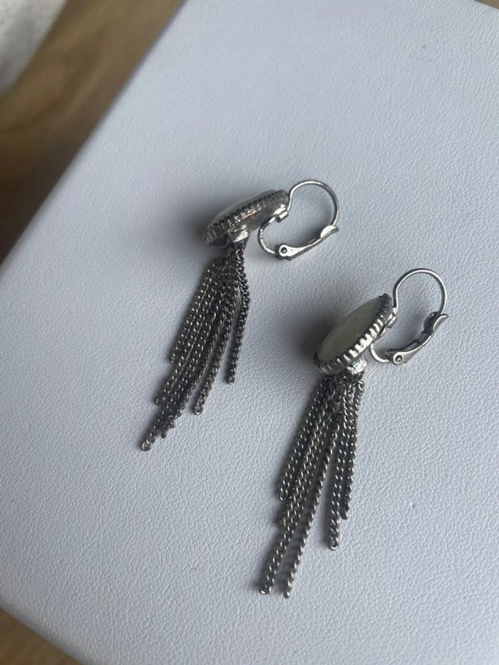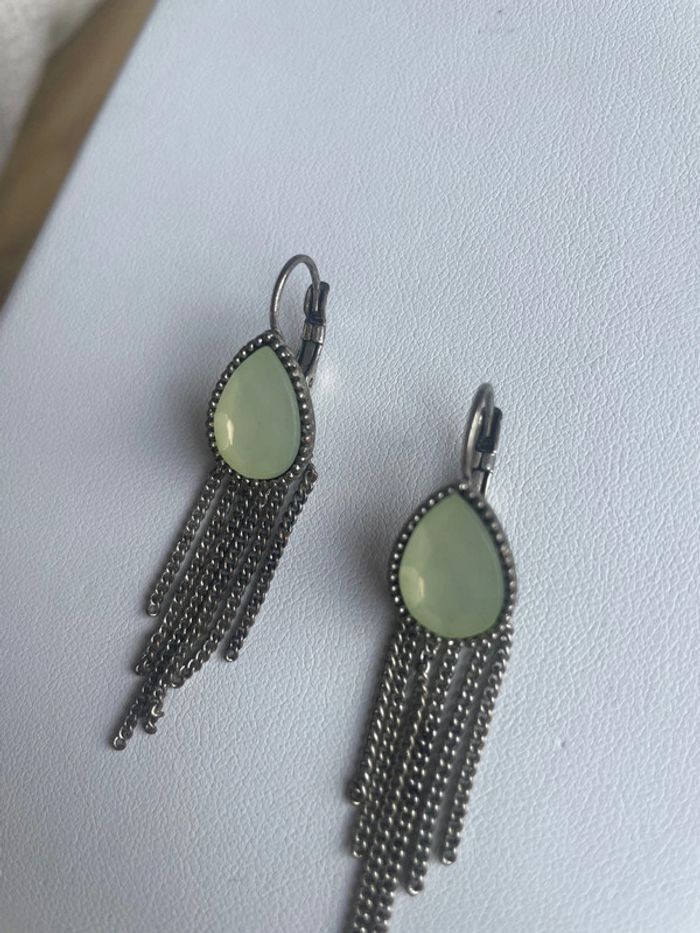 Boucles d’oreilles dormeuses Pierre verte céladon - photo numéro 5
