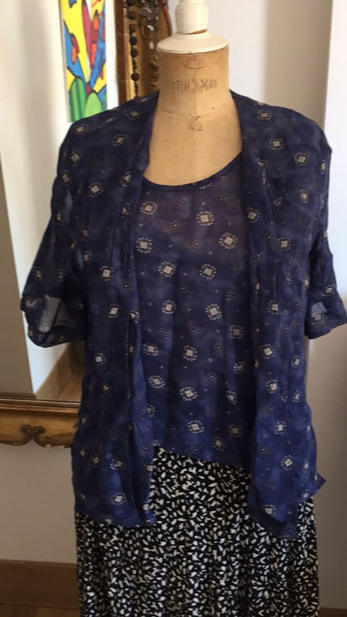 Très jolie blouse chemisier manches courtes bleu la matière est un peu transparente avec un débardeur assorti c’est une sorte de voile avec beaucoup de tenue taille 38 #Blouse38 #Chemise38 #Chemisier38 #ChemisierBleu38 #BlouseBleue38 #ChemisierTransparent38 #Reste38 #VesteBleue38 #ChemiseBleue38 #Twinset38 #TwinsetBleu38