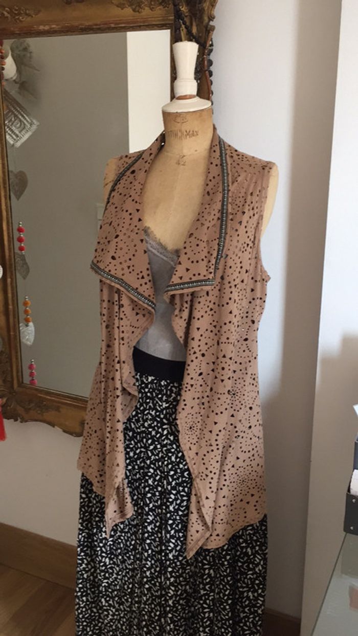 Gilet ajouré marron Matière très souple qui ressemble à du daim taille unique il est en très bon état joli détail d’un petit galon bleu marron doré se porte été comme hiver longueur 71cm agrémente une tenue#Gilet #GiletMarron #GiletOverSize #TailleUnique #OverSize #GiletTailleUnique#Giletdaim #giletindien #GiletCountry #Country #TenueCountry