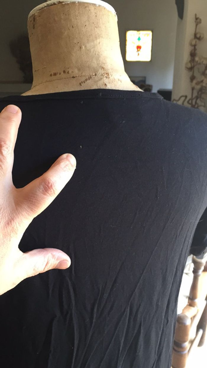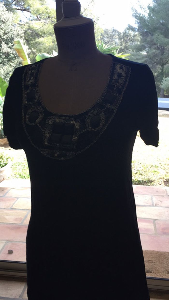 Jolie tunique noire avec empiècement paillettes et cabochons Malheureusement il y a deux petits trous voir la troisième photo C’est une taille unique Du coup un tout petit prix pour quelqu’un qui sait coudre les petits trous se répare facilement #Tunique #TuniqueNoire #TuniquePaillettes #Paillettes #EmpiècementPaillettes